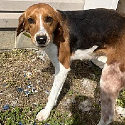 Notes: Maggie, female, Hound, 1 year 2 months old, 34 lbs, Pet ID 2025-0134